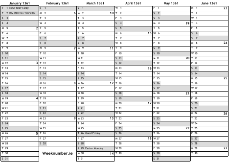 1361 calendar