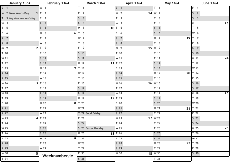1364 calendar