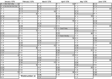 1376 calendar