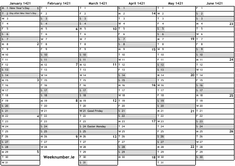 1421 calendar