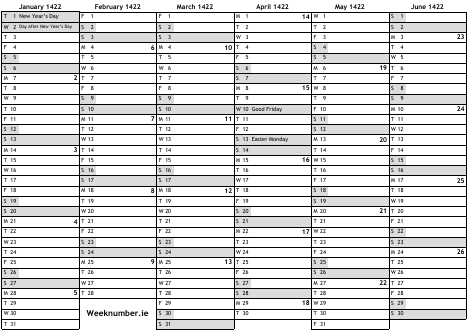 1422 calendar