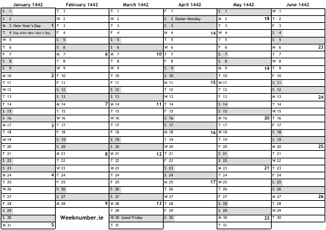 1442 calendar