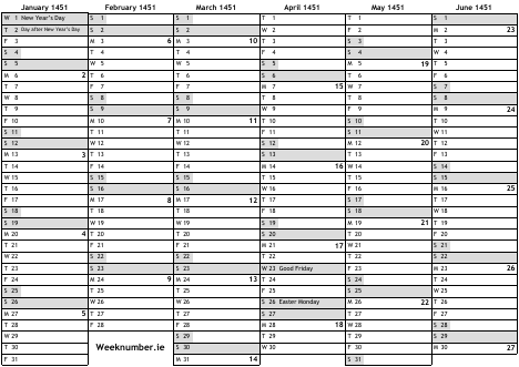 1451 calendar