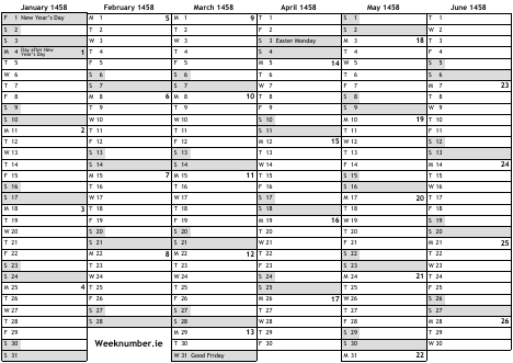 1458 calendar
