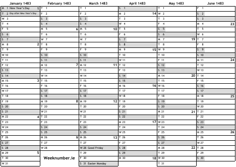 1483 calendar