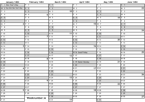 1484 calendar