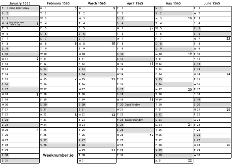 1565 calendar
