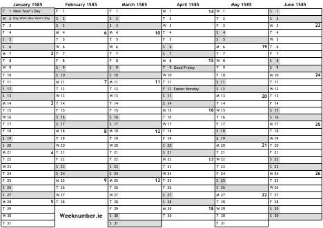 1585 calendar
