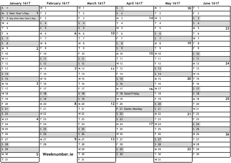 1617 calendar