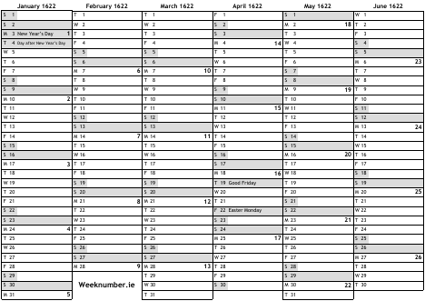 1622 calendar