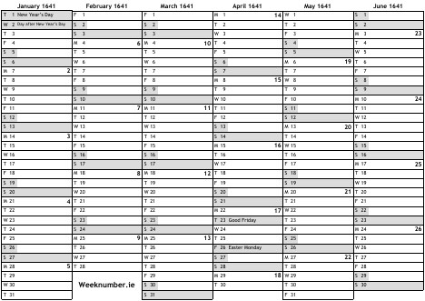 1641 calendar
