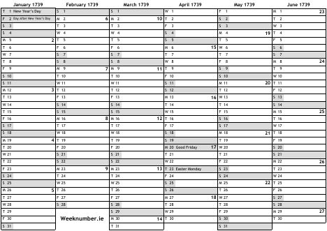 1739 calendar