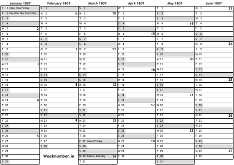 1807 calendar