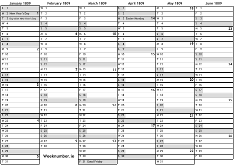 1809 calendar