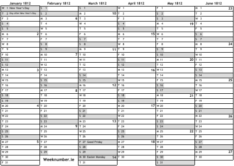 1812 calendar