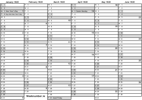 1820 calendar