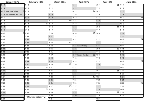 1876 calendar