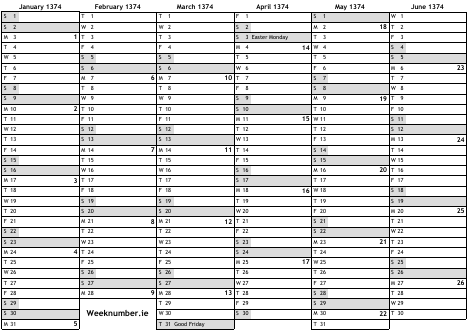 1374 calendar