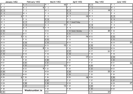 1452 calendar