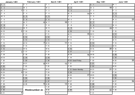 1481 calendar