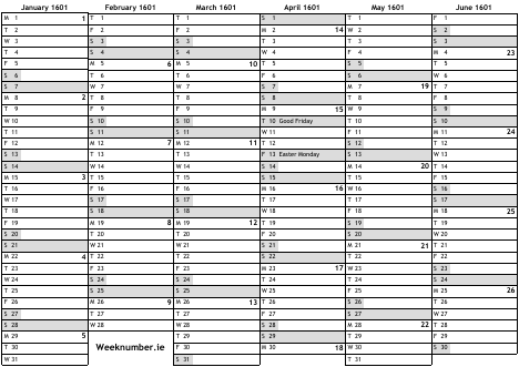1601 calendar