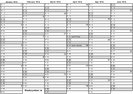 1816 calendar