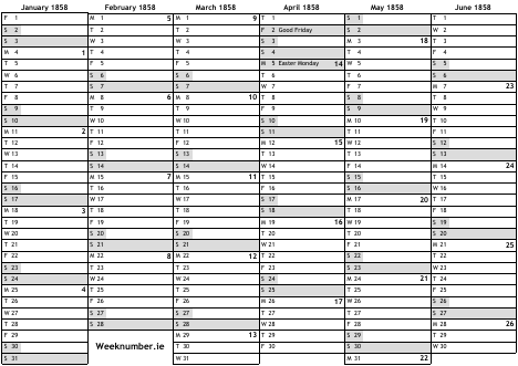 1858 calendar