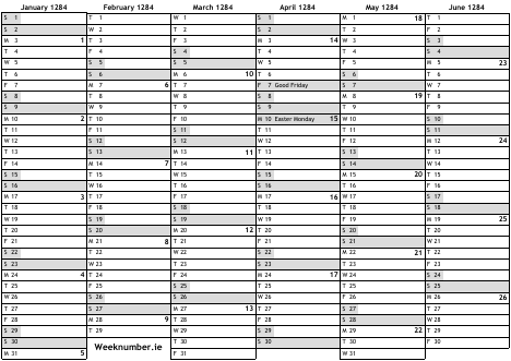 1284 calendar