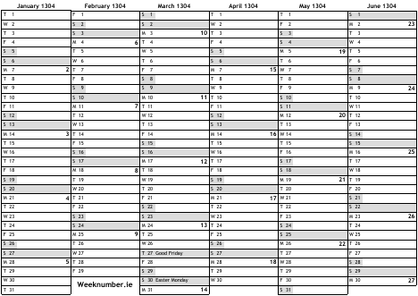 1304 calendar
