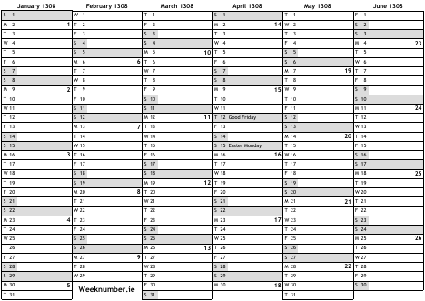 1308 calendar