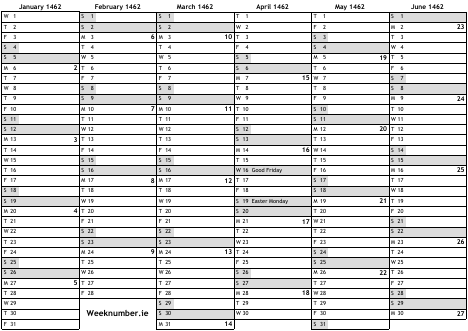 1462 calendar