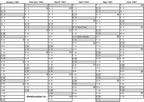 1463 calendar
