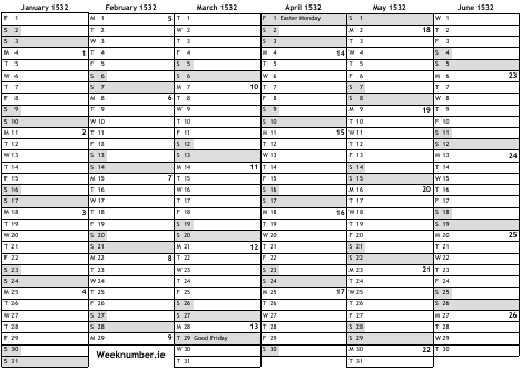 1532 calendar