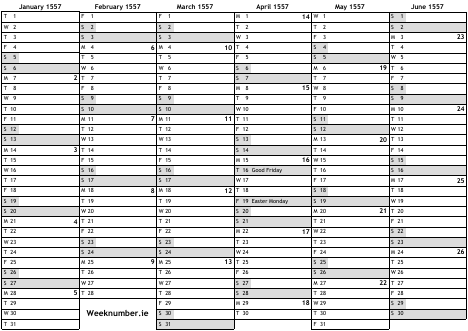 1557 calendar