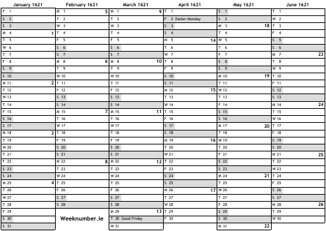 1621 calendar