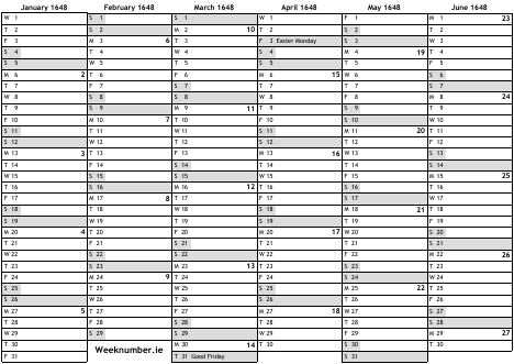 1648 calendar