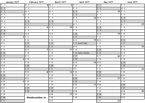 1677 calendar