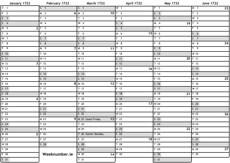 1722 calendar