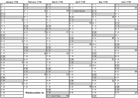1738 calendar