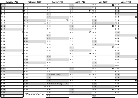 1780 calendar