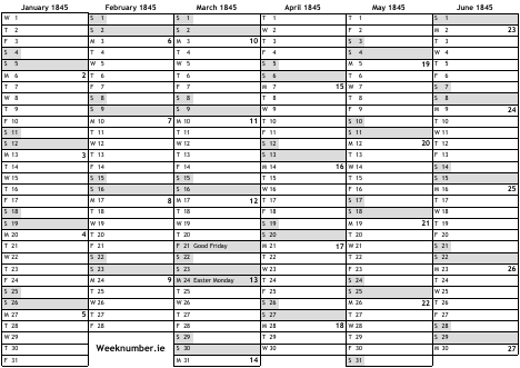 1845 calendar