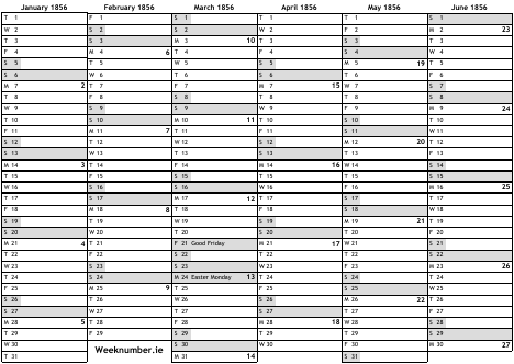 1856 calendar