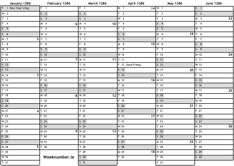 1286 calendar