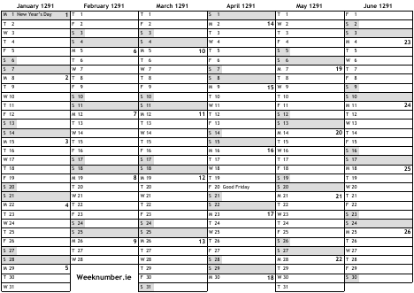 1291 calendar