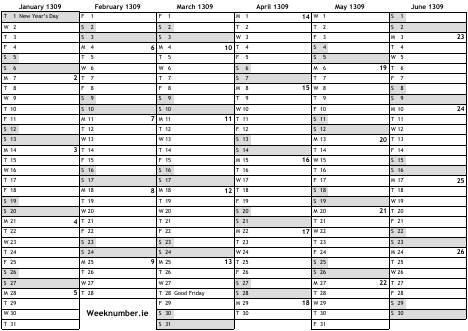 1309 calendar
