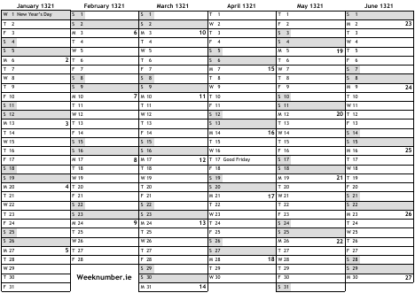 1321 calendar