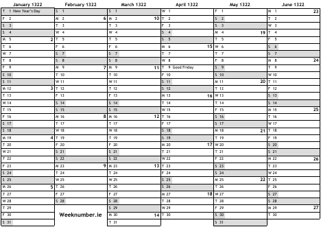 1322 calendar