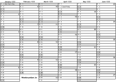 1333 calendar