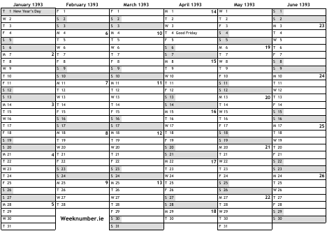 1393 calendar