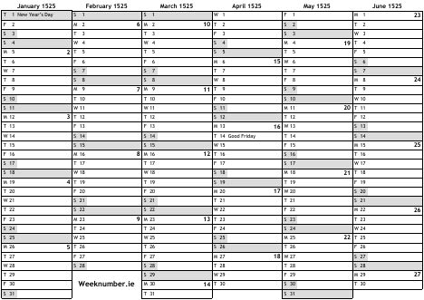 1525 calendar